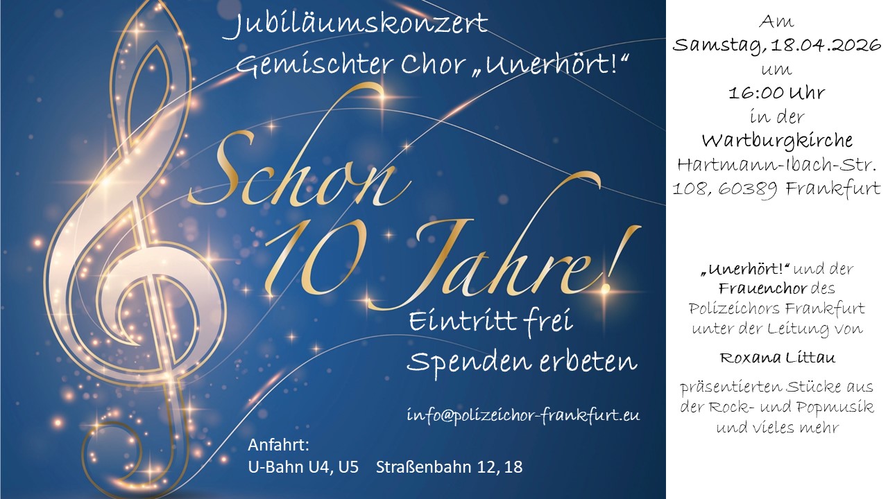 Der gemischte Chor „Unerhört!“ feiert 10-jähriges Bestehen gemeinsam mit dem Frauenchor des Polizeichors.